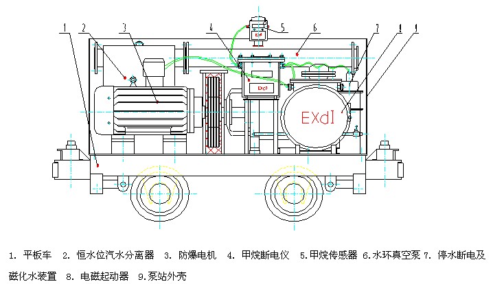 礦用移動式瓦斯抽放泵站的所有設(shè)施全部安裝在一個平板礦車上,不需要重新解體裝配,但在使用時需要注意以下幾點: