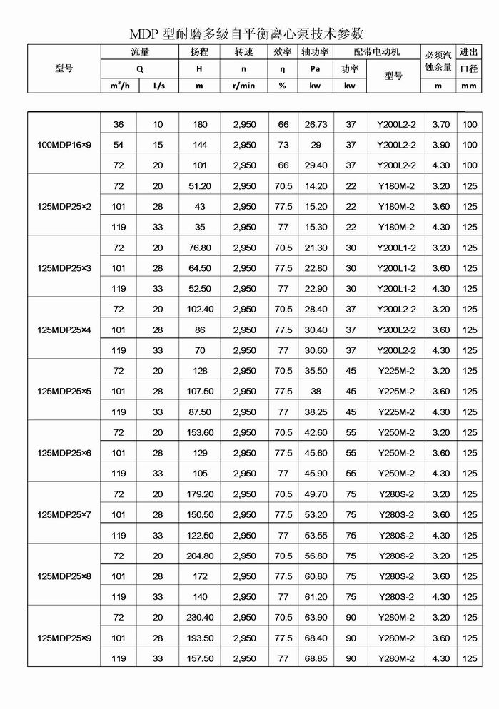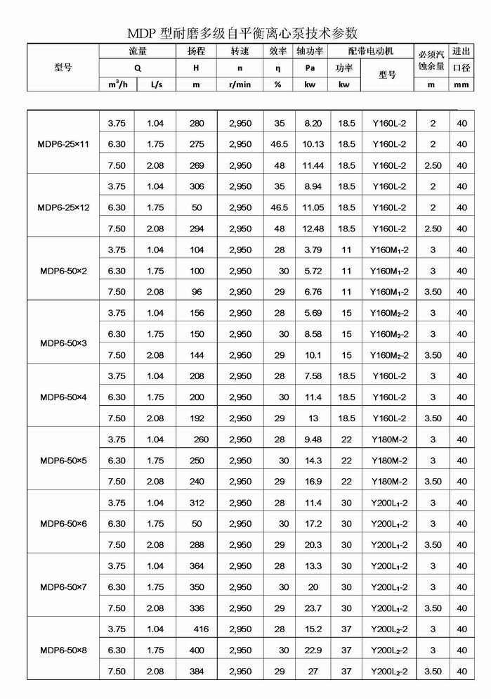 MD(P)平衡型煤礦用耐磨多級(jí)離心泵是我公司在引進(jìn)、消化、吸收先進(jìn)技術(shù)基礎(chǔ)上研制開發(fā)成功的,該產(chǎn)品不僅效率高、汽蝕性能好、關(guān)鍵是運(yùn)行平穩(wěn)可靠。適用于煤碳,礦山、工廠及其它場(chǎng)合輸送固體顆粒含量不大于1.5%(粒徑小于0.5mm)、溫度不大于40℃的中性礦井水和其它類似的污水。