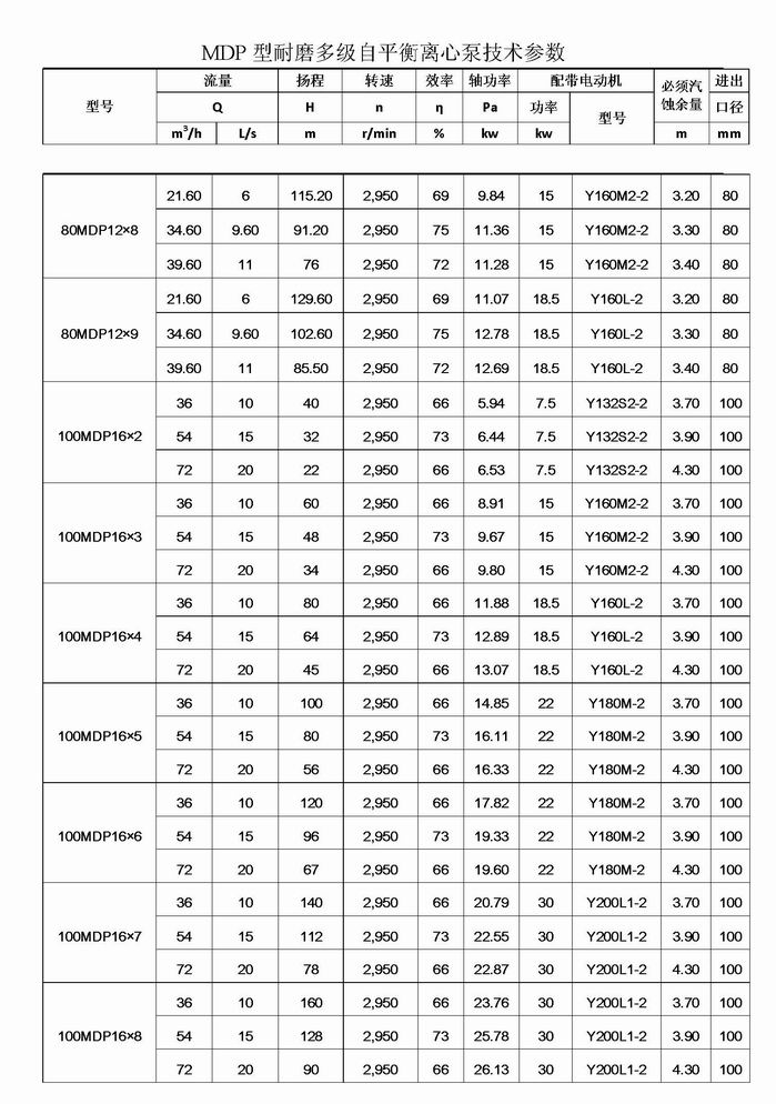 MD100—80×8(P)MD:煤礦用耐磨多級(jí)離心泵
