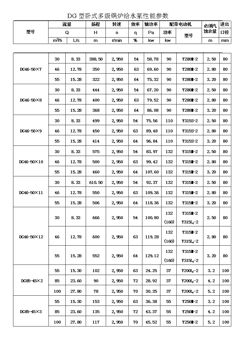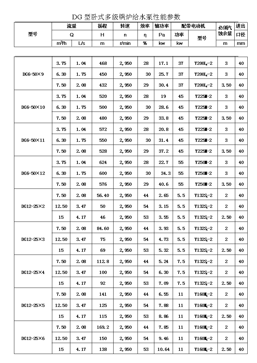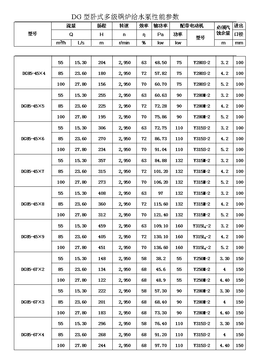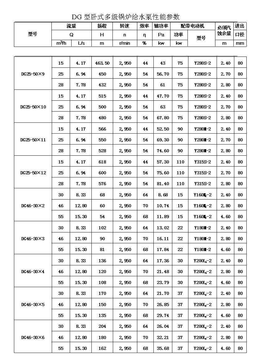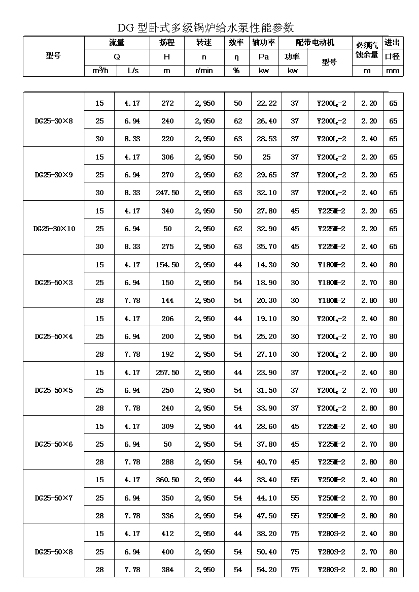 DG型鍋爐給水泵是臥式單級多吸分段式離心水泵。供吸送清水(含雜質(zhì)量小于1%,顆粒度小于0.1mm)及物理化學(xué)性質(zhì)類似于清水的液體之用。輸送介質(zhì)溫度不高于105攝氏度,適用于小型鍋爐給水及城鎮(zhèn)供水等場合。DG型鍋爐給水泵屬國家經(jīng)委、機電部聯(lián)合推廣的節(jié)能產(chǎn)品,用來代替GC型鍋爐給水泵,其效率平均比GC型高8%,敬請用戶優(yōu)先選用。
