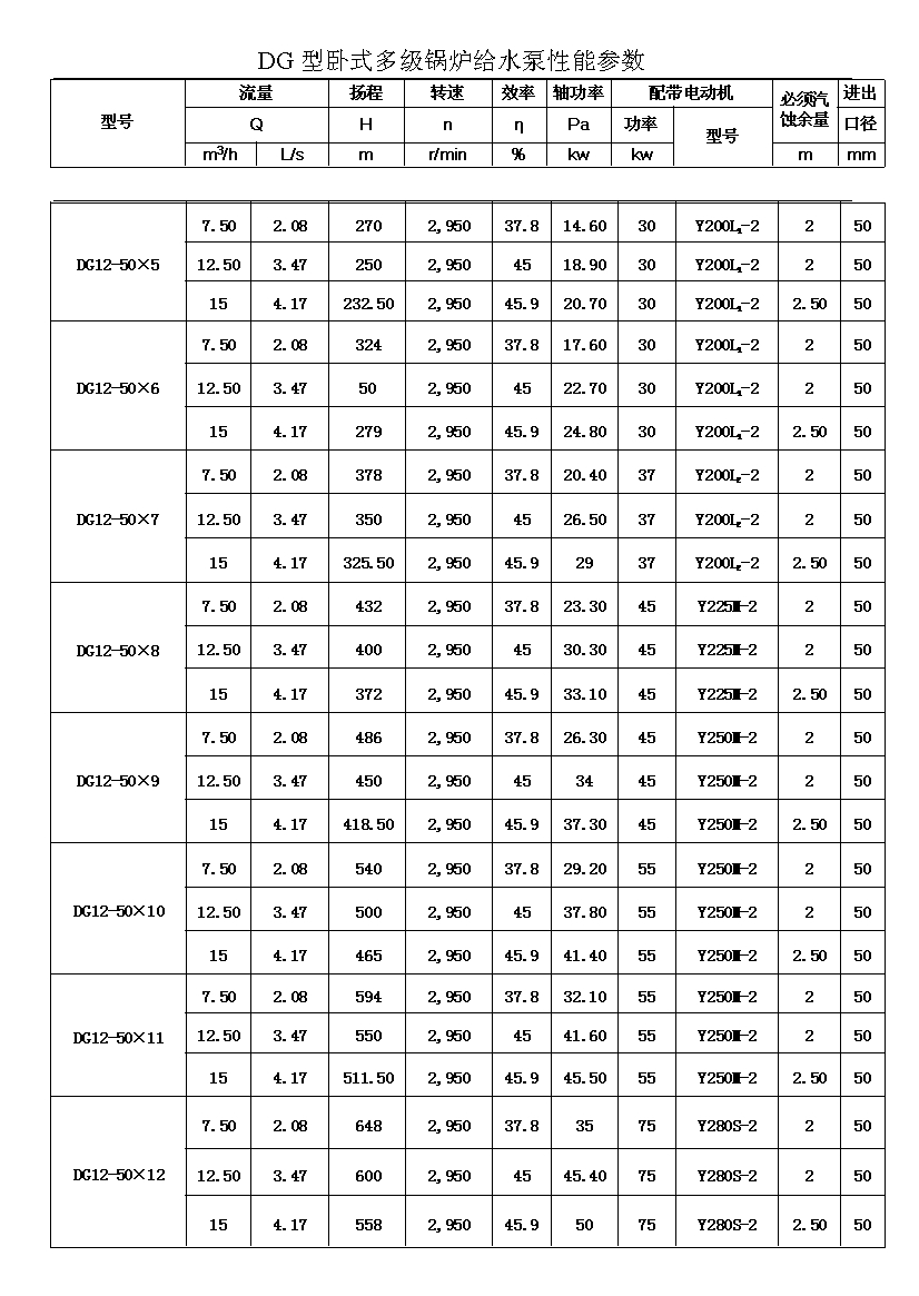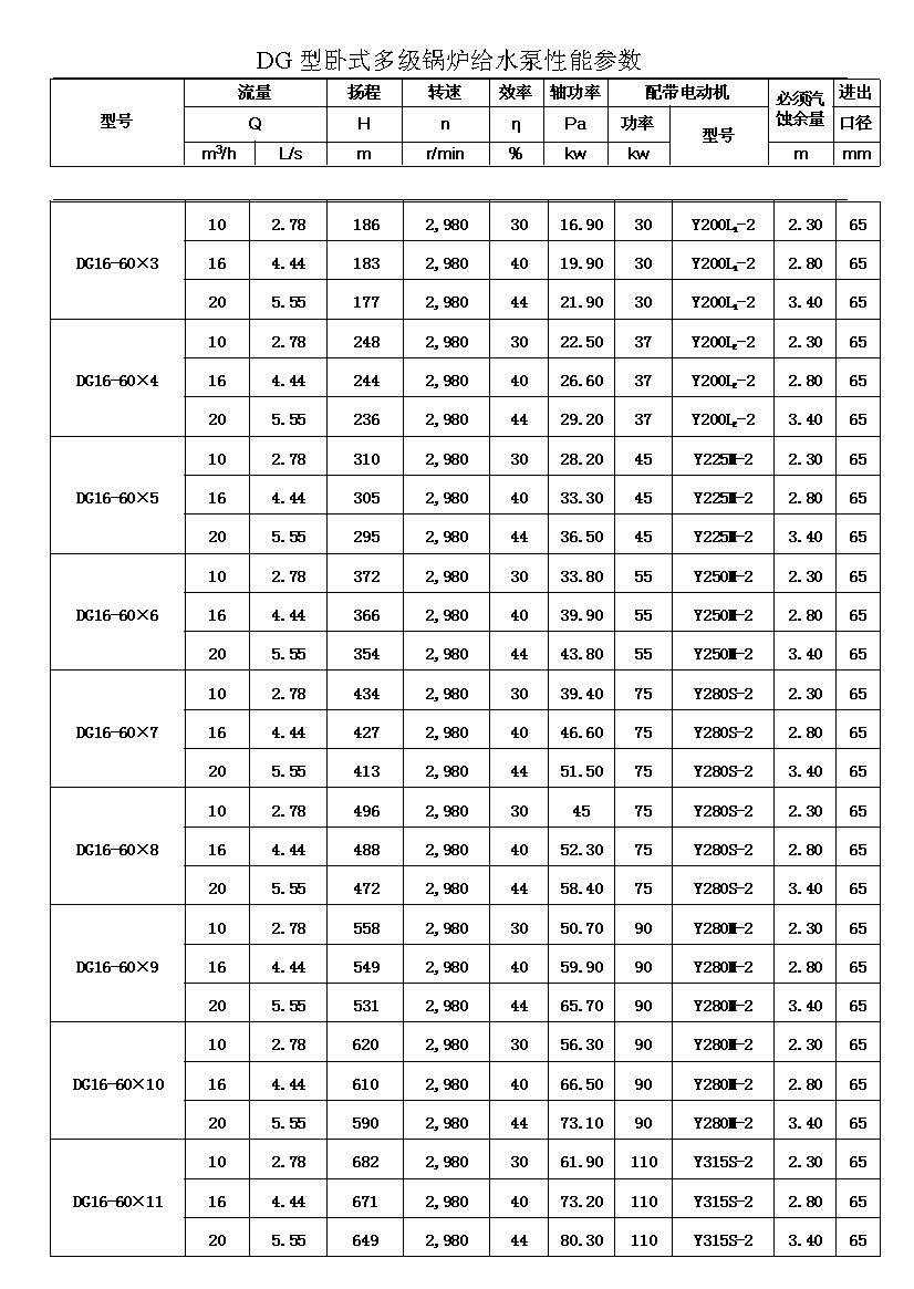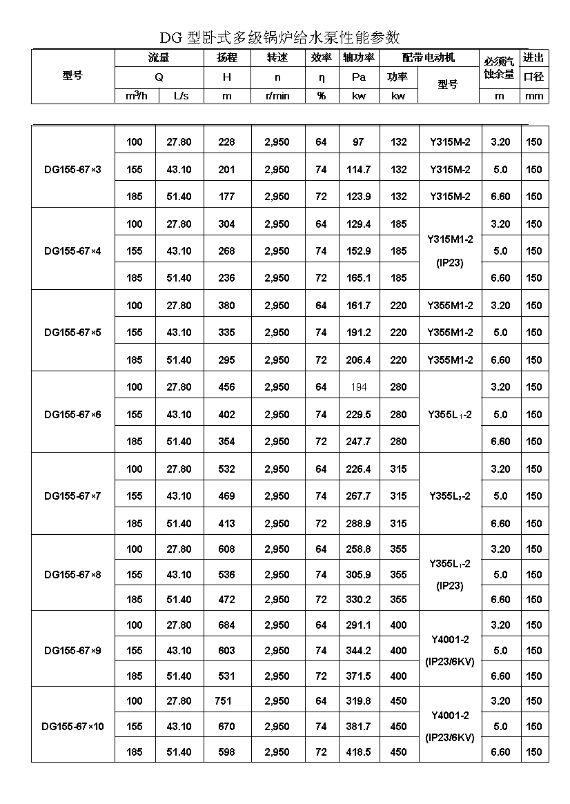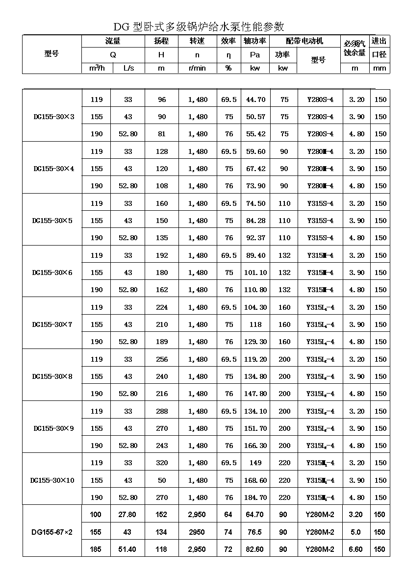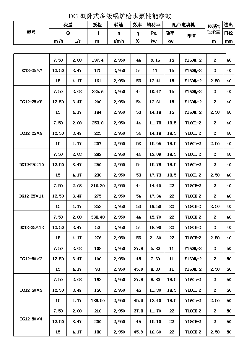 DG型鍋爐給水泵是臥式單級多吸分段式離心水泵。供吸送清水(含雜質(zhì)量小于1%,顆粒度小于0.1mm)及物理化學(xué)性質(zhì)類似于清水的液體之用。輸送介質(zhì)溫度不高于105攝氏度,適用于小型鍋爐給水及城鎮(zhèn)供水等場合。DG型鍋爐給水泵屬國家經(jīng)委、機電部聯(lián)合推廣的節(jié)能產(chǎn)品,用來代替GC型鍋爐給水泵,其效率平均比GC型高8%,敬請用戶優(yōu)先選用。
