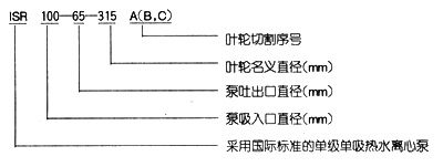 ISR系列單級(jí)單吸熱水離心泵共有二十九種基本型,為滿足用戶對(duì)泵的不同性能要求,我廠采用了切割葉輪外徑的方法,從而增多了ISR泵的規(guī)格。