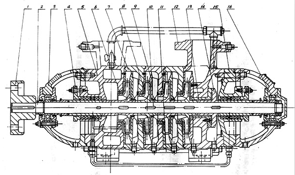 泵殼體部分主要由軸承、前段、中段、后段、導(dǎo)葉等用螺栓聯(lián)接成整體,