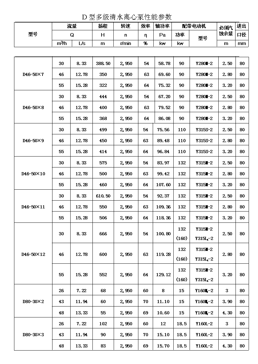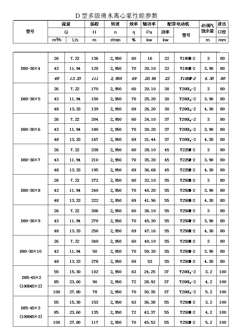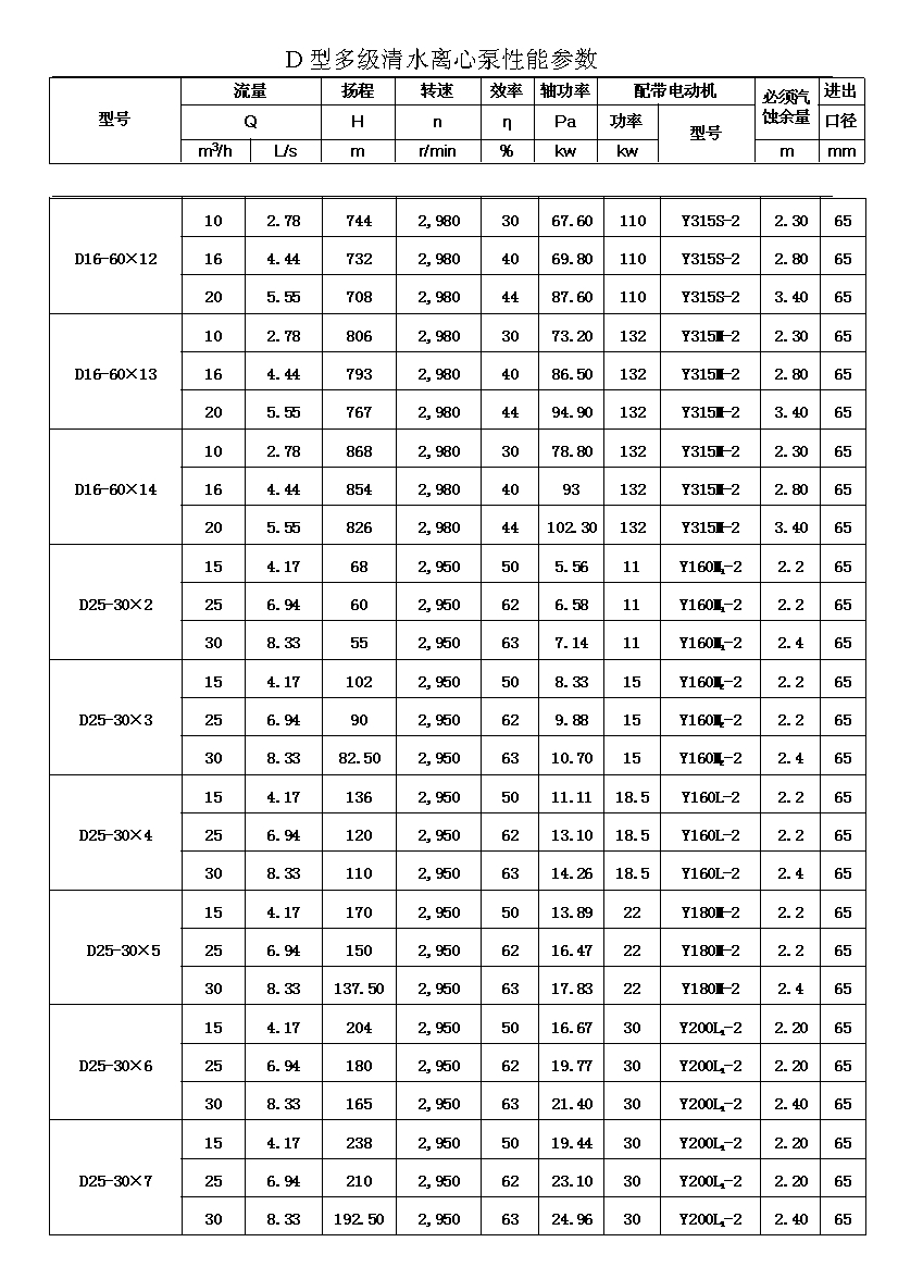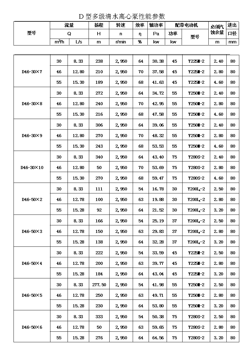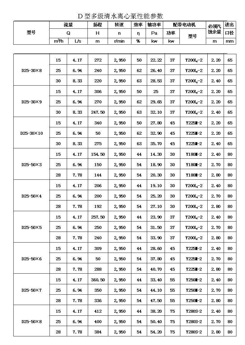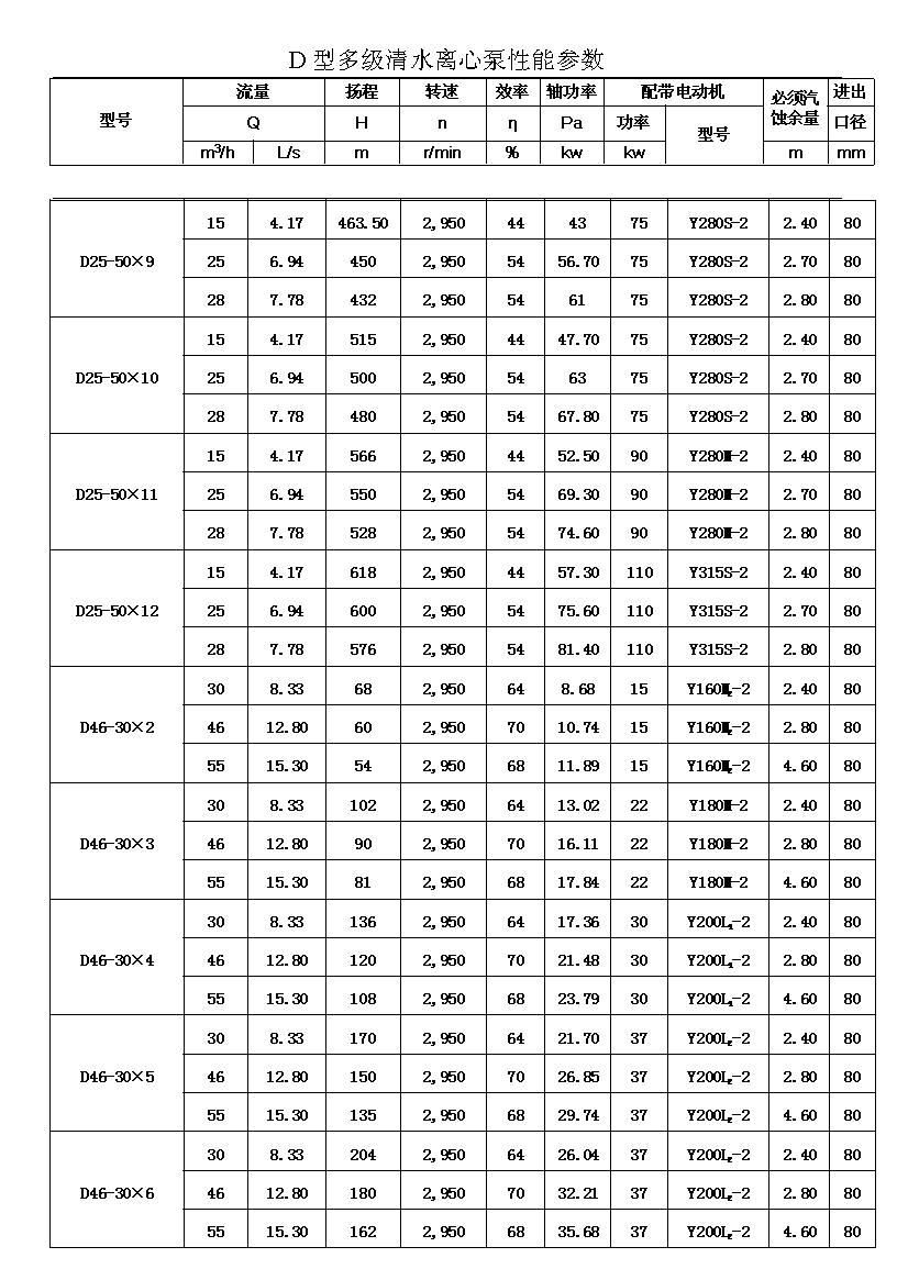 D——表示單吸、多級、節(jié)段式離心清水泵。