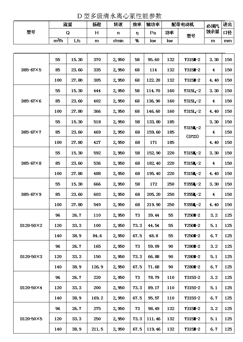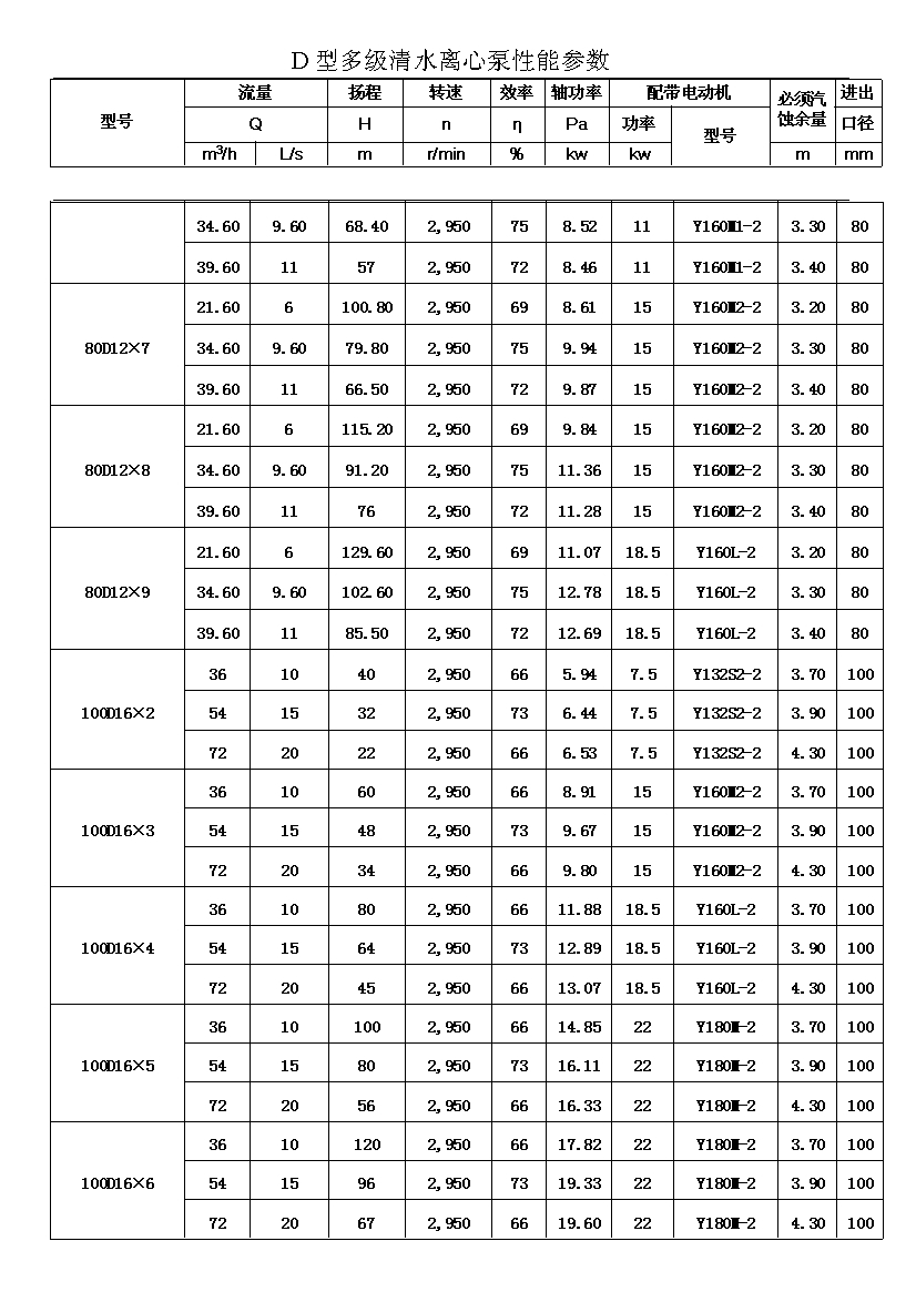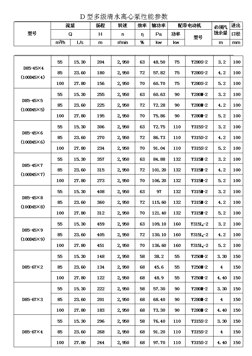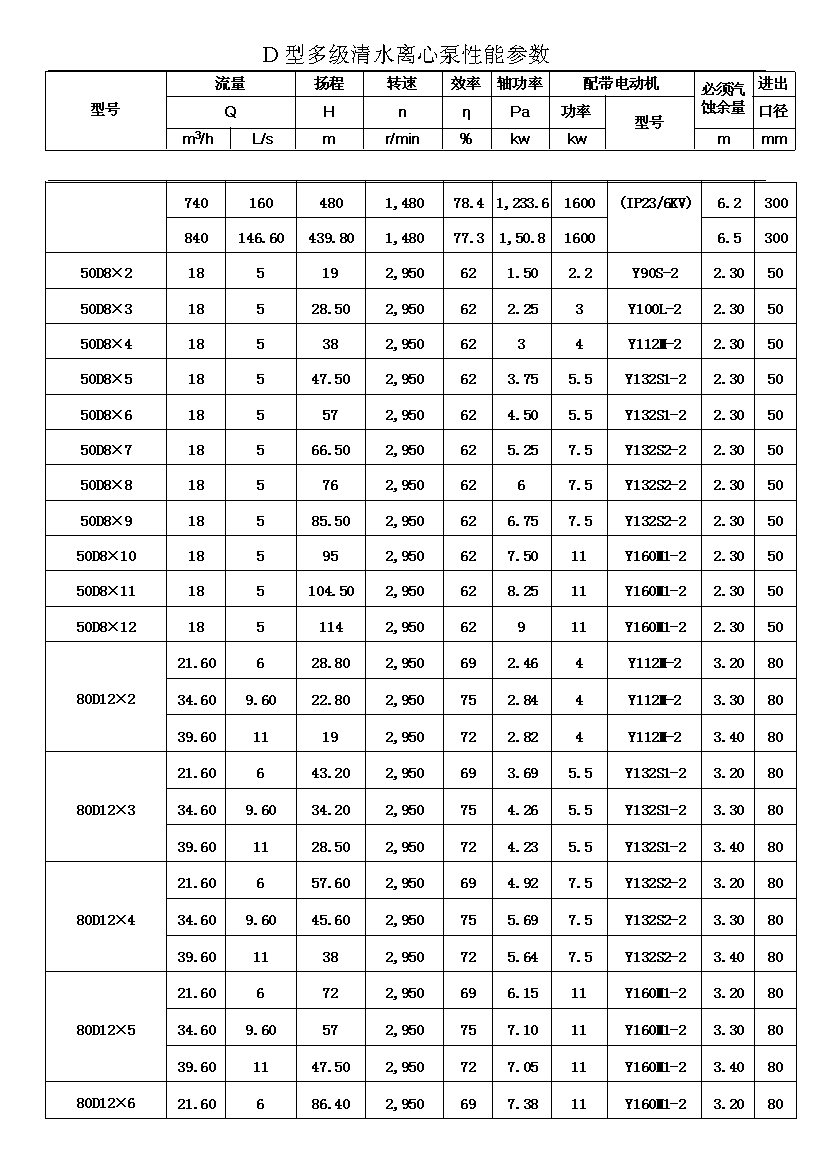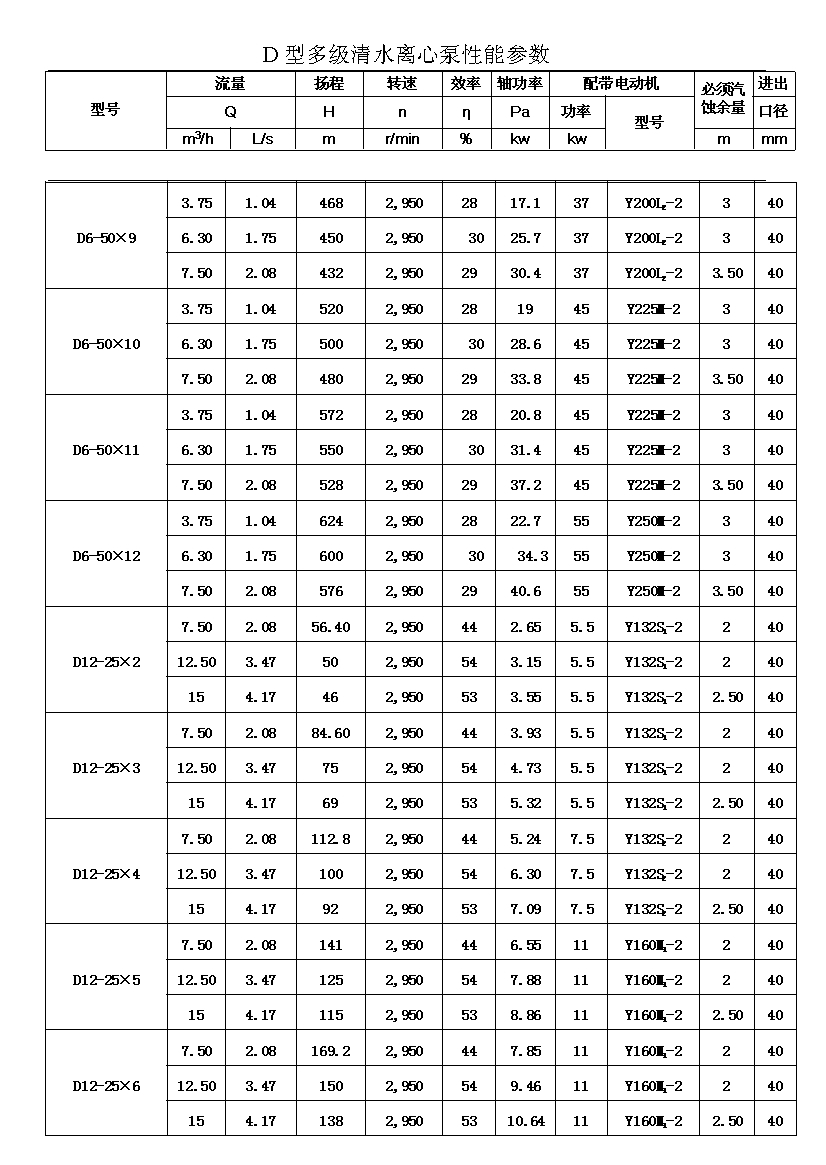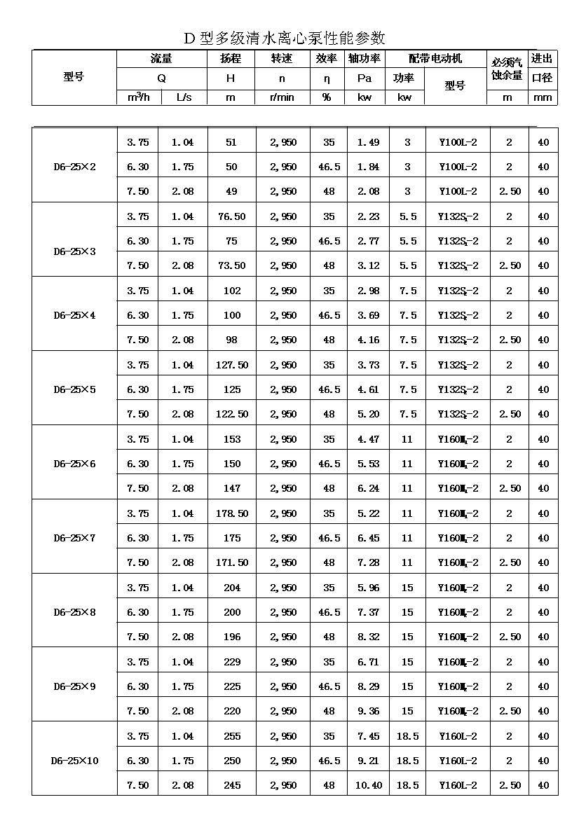 D——表示單吸、多級、節(jié)段式離心清水泵。