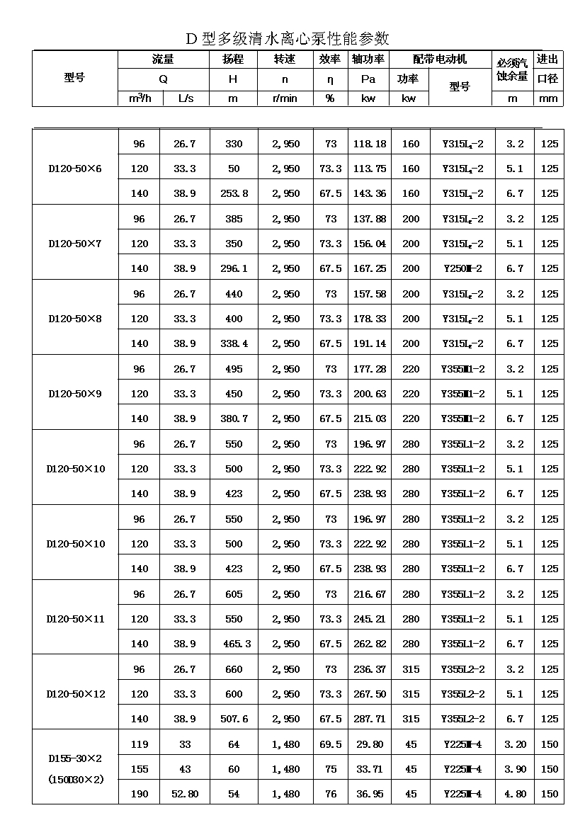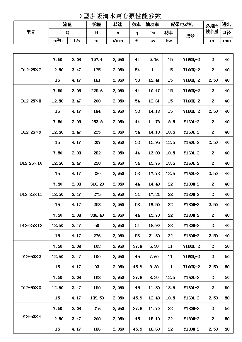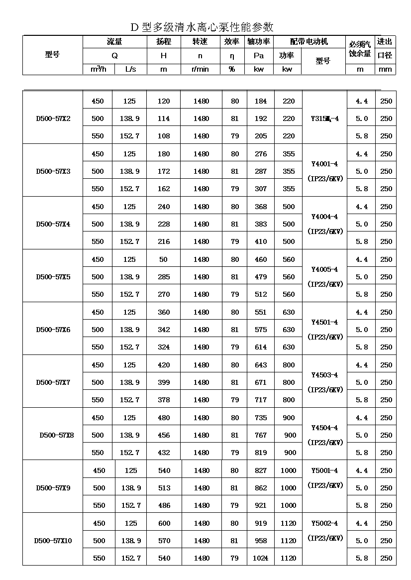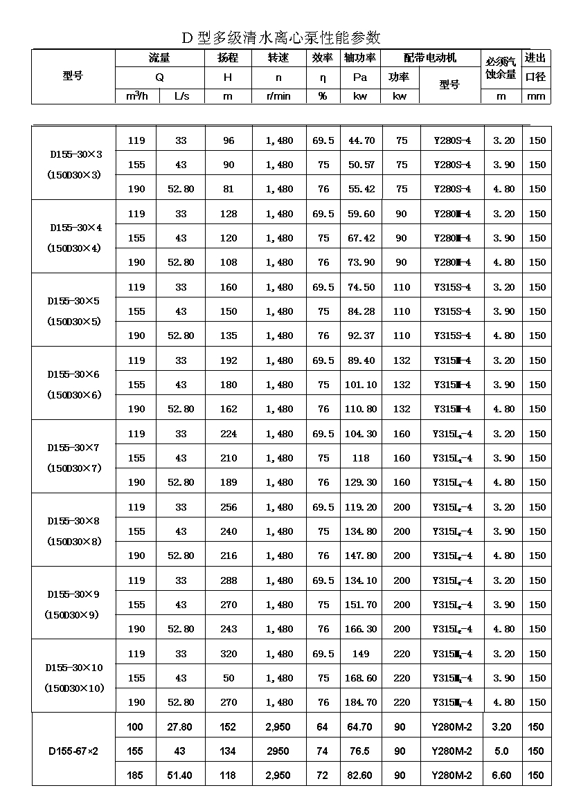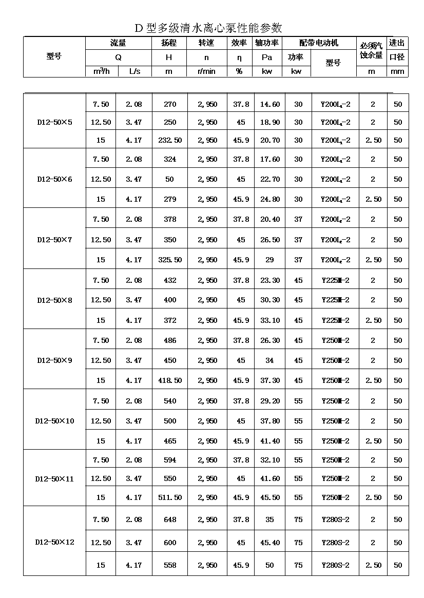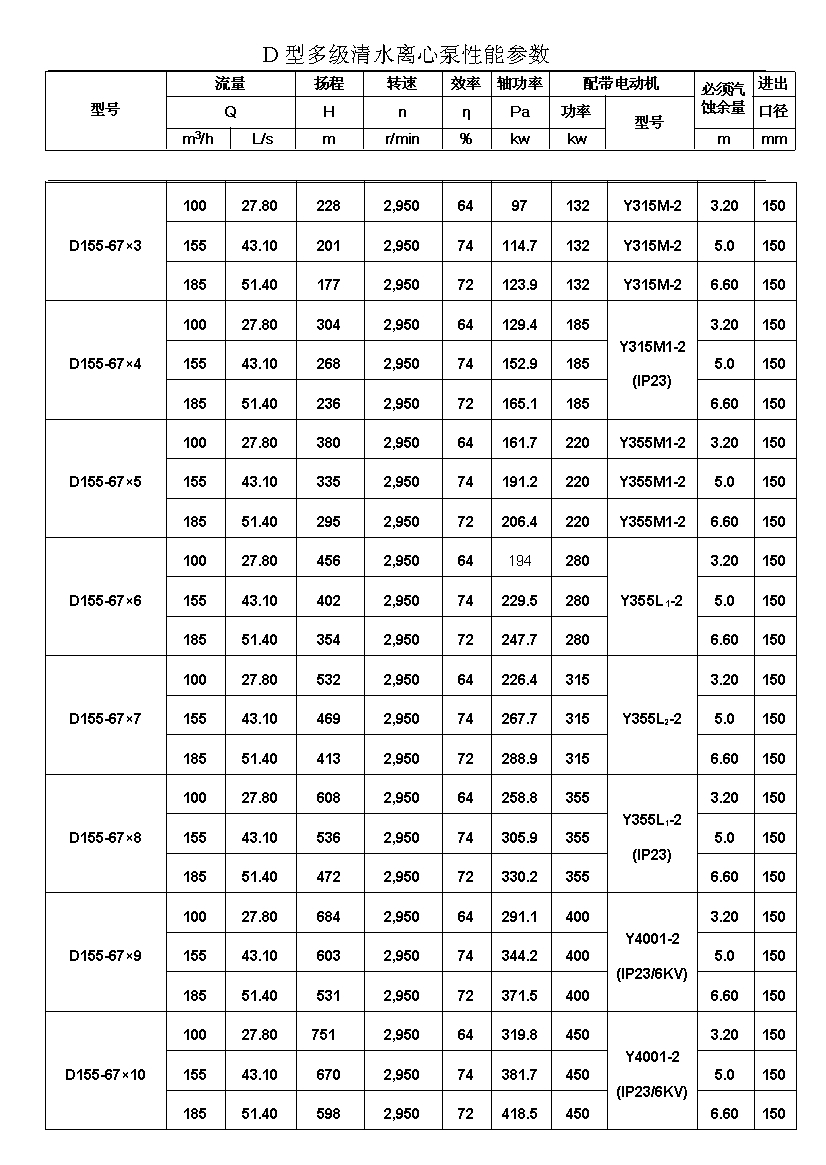 D——表示單吸、多級、節(jié)段式離心清水泵。
