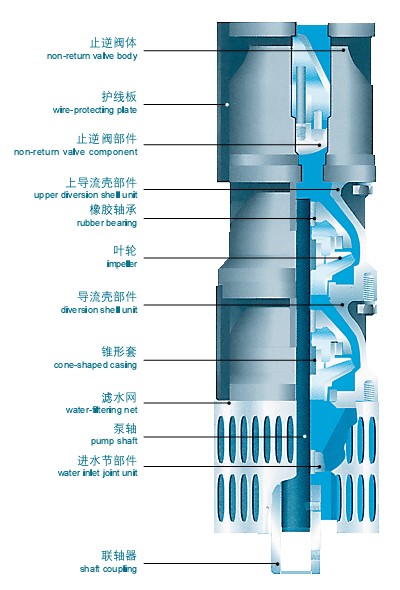 1、電機、水泵一體,潛入水中運行,安全可靠。